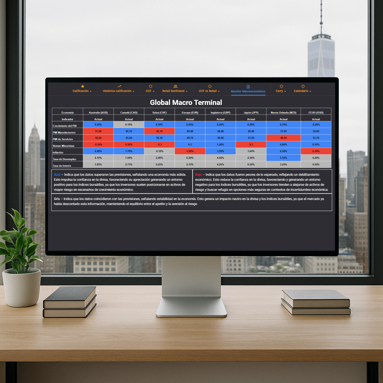 Desde posicionamiento COT hasta tendencias macroeconómicas, nuestra plataforma le